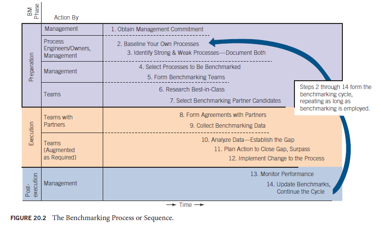 At the conclusion of the benchmarking project with your partner, data analysis will have produced both quantitative and qualitative information. The quantitative information is effectively the “stake driven into the ground” as the point from which future progress is measured. It is also used as the basis for improvement objectives. Qualitative information covers such matters as personnel policies, training, management styles and hierarchy, total quality maturity, and so on. This information provides insights on how the benchmarking partner got to be best-in-class.