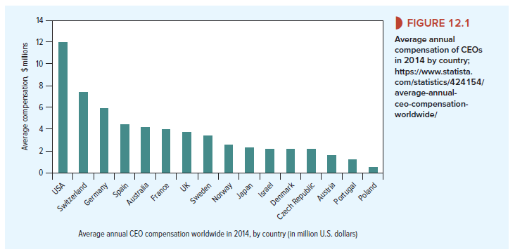 - Figure 12.3 shows that only 12% of compensation for these CEOs comes from salary. The remainder comes from bonuses, stock grants, stock options, and other performance-linked incentives. This proportion of incentive-based compensation has increased sharply and is much higher than in other countries.