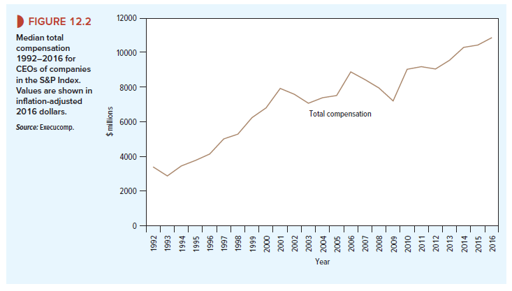 - Figure 12.2 shows that average compensation in the United States has risen much more rapidly than inflation. Between 1992 and 2016, total compensation for the CEOs of companies in the Standard & Poor’s (S&P) Index has more than tripled in real terms.12