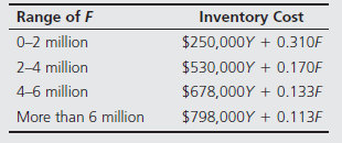 If you can handle only a single linear inventory cost, you should use $475,0007 + 0.165/L For each facility, Y = 1 if the facility is used, 0 otherwise.