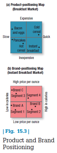 Suppose the instant-breakfast-drink concept looks best. The next task is to show where this powdered product would stand in relationship to other breakfast products via perceptual mapping. Figure 15.3(a) uses the two dimensions of cost and preparation time to create a product-positioning map for the breakfast drink, which offers low cost and quick preparation. Its nearest competitors are cold cereal and breakfast bars; its most distant is bacon and eggs. These contrasts can help communicate and promote the concept to the market.