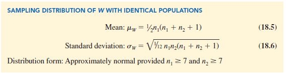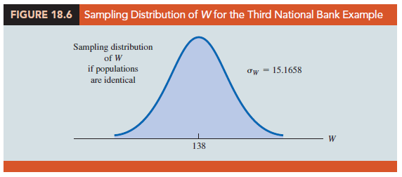 Figure 18.6 shows the normal distribution used for the sampling distribution of W.