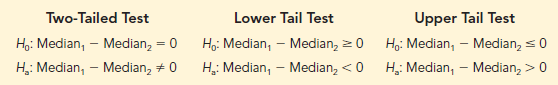 As a final comment, some applications of the MWW test make it appropriate to assume that the two populations have identical shapes and if the populations differ, it is only by a shift in the location of the distributions. If the two populations have the same shape, the hypothesis test may be stated in terms of the difference between the two population medians. Any difference between the medians can be interpreted as the shift in location of one population compared to the other. In this case, the three forms of the MWW test about the medians of the two populations are as follows: