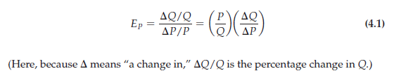 Recall from Section 2.4 (page 33) that the price elasticity of demand measures the percentage change in the quantity demanded resulting from a 1-percent increase in price. Denoting the quantity of a good by Q and its price by P, the price elasticity of demand is