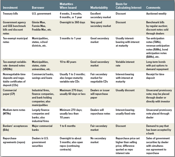 The principal money market instruments are summarized in Table 30.5. We describe each in turn.