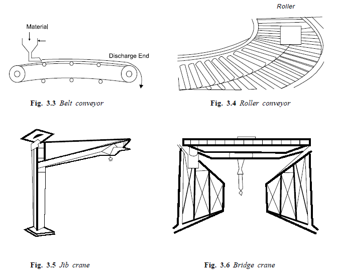 Broadly material handling equipment’ s can be classified into two categories, namely: (a) Fixed path equipments, and (b) Variable path equipments.