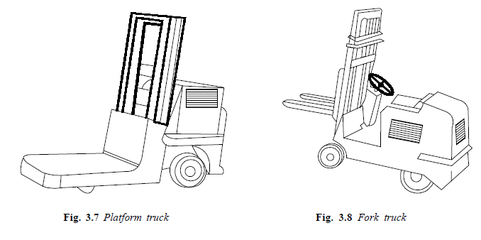 The choice of material-handling equipment among the various possibilities that exist is not easy. In several cases the same material may be handled by various types of equipments, and the great diversity of equipment and attachments available does not make the problem any easier. In several cases, however, the nature of the material to be handled narrows the choice. Some of the material handling equipment are shown in Figs. 3.1 to 3.11.