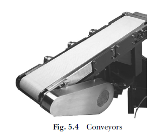 Conveyors. Conveyors are used for applications where continuous flow of material is required over longer distances. They excel at straight transportation because they eliminate re-handling before and after each function. Conveyors are also used in sorting and merging operations. For example, in large throughput warehouses, the cartons for dispatch to a particular region have to be sorted out for loading on to the assigned vehicle. The conveyors fitted with bar code reading device sort the boxes moving on the conveyor and direct them to the assigned dispatch station in the warehouse. These conveyors are most commonly used in the automated warehouses of retail chain in the USA where cartons as high as 1,00,000 in numbers are handled every day. A conveyor is either power driven or gravity flow type and is available in chain, belt or rollers as conveying media (Figure 5.4).
