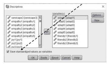 Figure 7.28 Creating Z Scores of Variables in SPSS