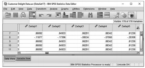 SPSS will create a new variable for each one of the variables selected in the Descriptives window. At the end of the data, SPSS will add a “Z” in the front of the newly formed variable along with the original variable name. See Figure 7.29.