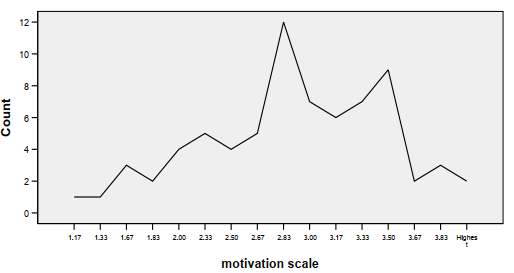 - Graphs →Legacy Dialogs → (be sure that Simple and Summaries for groups of cases are checked) → Define → motivation scale to Category Axis box → OK.