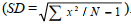 Standard deviation. This common measure of variability is most appropriate when one has normally distributed data, although the standard deviation of ranked ordinal data may also be useful in some cases. The standard deviation is based on the deviation (x) of each score from the mean of all the scores. Those deviation scores are squared and then summed (Ex2). This sum is divided by N– 1, and, finally, the square root is taken