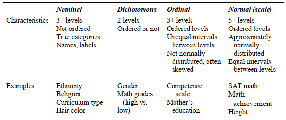 Table 3.2. Characteristics and Examples of Our Four Levels of Measurement