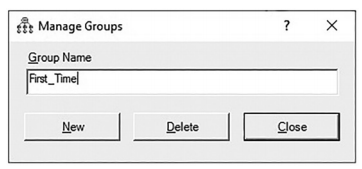 (You can also access the “Manage Groups” window by going to the “Analyze” menu at the top of AMOS and then select Manage Groups). In the Manage Groups window, change the name of the group to whatever you desire. I am calling the first group “First_Time” to rep- resent the first-time customers. To create a second group, you need to hit the “New” button on the bottom of the Manage Groups window.This will form a new group (AMOS will call it Group 2 by default) and you should change the name to represent the second group. I’ll call the second group “Repeat”. After forming the groups, you need to tell AMOS where the data is for each group. Select the data file icon