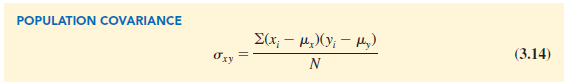 The formula for computing the covariance of a population of size N is similar to equation (3.13), but we use different notation to indicate that we are working with the entire population.