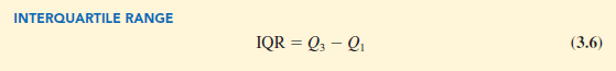 A measure of variability that overcomes the dependency on extreme values is the interquartile range (IQR). This measure of variability is the difference between the third quartile, Q3, and the first quartile, Q1. In other words, the interquartile range is the range for the middle 50% of the data.
