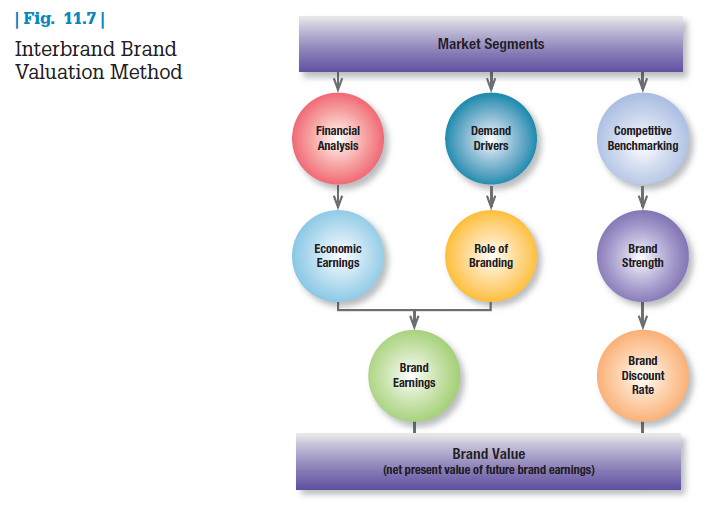 Top brand-management firm Interbrand has developed a model to formally estimate the dollar value of a brand. It defines brand value as the net present value of the future earnings that can be attributed to the brand alone. The firm believes marketing and financial analyses are equally important in determining the value of a brand. Its process follows five steps (see Figure 11.7 for a schematic overview):