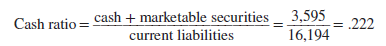 A low cash ratio may not matter if the firm can borrow on short notice. Who cares whether the firm has actually borrowed from the bank or whether it has a guaranteed line of credit so it can borrow whenever it chooses? None of the standard measures of liquidity takes the firm’s “reserve borrowing power” into account.