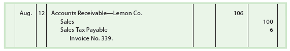 At the time of a cash sale, the seller collects the sales tax. When a sale is made on account, the seller charges the tax to the buyer by debiting Accounts Receivable. The seller credits the sales account for the amount of the sale and credits the tax to Sales Tax Payable. For example, the seller would record a sale of $100 on account, subject to a tax of 6%, as follows: