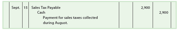 On a regular basis, the seller pays to the taxing authority (state) the amount of the sales tax collected. The seller records such a payment as follows: