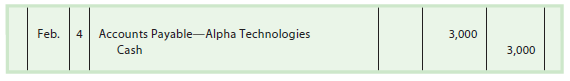 Assume that NetSolutions does not take the discount, but instead pays the invoice on February 4. In this case, NetSolutions would record the payment as follows: