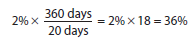 The savings can also be seen by comparing the interest rate on the money saved by taking the discount and the interest rate on the money borrowed to take the discount. The interest rate on the money saved in the prior example is estimated by converting 2% for 20 days to a yearly rate, as follows: