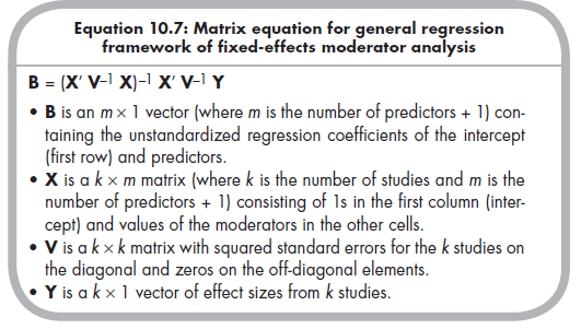 The general regression framework of analyzing moderators within the fixed- effects context (Section 9.3) can be solved using matrix algebra given the following equation (from Overton, 1998):