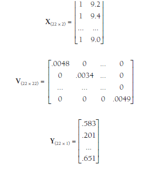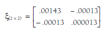 Variances of these estimates of the regression coefficients are obtained via the diagonal of the m X m matrix, = (X’ V-1 X)-1. In this example,