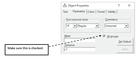 Next, you need to drag in all the predictor variables into the AMOS graphics window and draw a covariance between all the variables.With mixture modeling you need to constrain (1) the variances of constructs; and (2) the covariances between constructs to be equal across all the groups. In a construct you just dragged into AMOS, right click and go to Object Proper- ties. In the parameters tab at the top, go to the variance field and label it “v1”. Make sure the “All groups” button is checked as well in the Object Properties window. This will label the variance the exact same across the groups as “v1”. You will then go and uniquely label each variance for every variable, repeating the same process as the variable labeled “v1”. Next, you will go to the covariances (right click and go to Object Properties) and uniquely name each covariance, again making sure the “All groups” option is checked. This will constrain all your groups (classifications) to be equal in regard to variance and covariance.