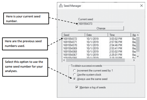 Figure 10.24 Seed Manager Window Along With List of Seeds Used