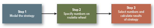 Step 2: Specifying Probabilities Remember the procedure for simulating the gambling strategy? The first step was to specify the strategy, the second was to specify the numbers on the roulette wheel, and the third was to tell the computer to select these numbers at random and calculate the results of the strategy: