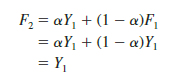 We now see that F4 is a weighted average of the first three time series values. The sum of the coefficients, or weights, for Y1, Y2, and Y3 equals 1. A similar argument can be made to show that, in general, any forecast Ft+1 is a weighted average of all the previous time series values.