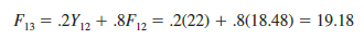 Continuing the exponential smoothing calculations, we obtain the weekly forecast values shown in Table 17.10. Note that we have not shown an exponential smoothing forecast or a forecast error for week 1 because no forecast was made. For week 12, we have Y12 = 22 and F12 = 18.48. We can we use this information to generate a forecast for week 13.