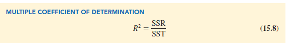 In Chapter 14, we used the coefficient of determination, r2 = SSR/SST, to measure the goodness of fit for the estimated regression equation. The same concept applies to multiple regression. The term multiple coefficient of determination indicates that we are measuring the goodness of fit for the estimated multiple regression equation. The multiple coefficient of determination, denoted R2, is computed as follows: