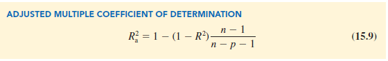 Many analysts prefer adjusting R2 for the number of independent variables to avoid overestimating the impact of adding an independent variable on the amount of variability explained by the estimated regression equation. With n denoting the number of observations and p denoting the number of independent variables, the adjusted multiple coefficient of determination is computed as follows: