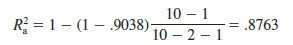 Thus, after adjusting for the two independent variables, we have an adjusted multiple coefficient of determination of .8763. This value (expressed as a percentage) is provided in the output in Figure 15.4 as R-Sq(adj) = 87.63%.