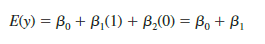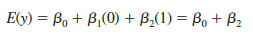 Because β0 equals E(y) for method C and β0 + β1 equals E(y) for method A, the first difference is equal to (β0 + β1) _ β0 = β1 Moreover, because b0 + b2 equals E(y) for method B, the second difference is equal to (β0 + β2) _ β0 = β2. We would conclude that the three methods do not differ if β1 = 0 and β2= 0. Hence, the null hypothesis for a test for difference of means can be stated as