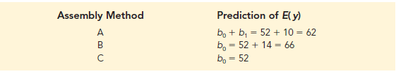 Note that the estimate of the mean number of units produced with each of the three assembly methods obtained from the regression analysis is the same as the sample mean shown previously.