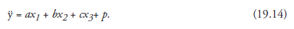 Going another step further, we may think of the situation of three independent variables, x1, x2, and x3, together causing effect on the dependent variable. Restricting the analysis to linear regression, we may state such a functional relation as