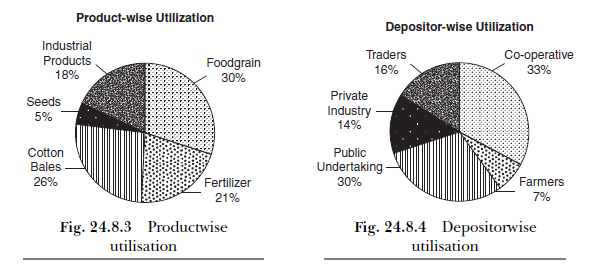 The firm’s storage capacity is mostly used for the storage of food grains and other agro-based products. The depositors are mainly cooperatives, public sector undertakings (PSUs), fertilizer firms, traders, and so on.