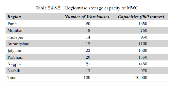 A good percentage of the warehouses (50 per cent) is more than 20-25 years old and was built to support the public distribution system of the government. The storage capacities of MWC are divided into six regions: