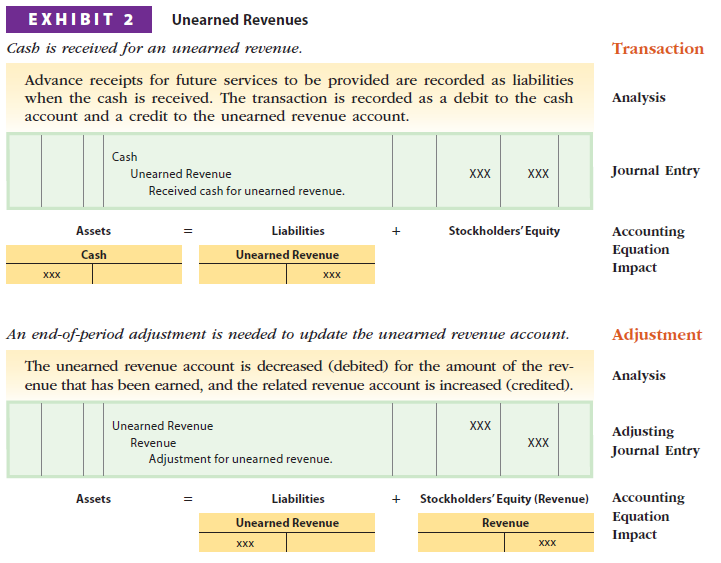 Exhibit 2 summarizes the nature of unearned revenues.
