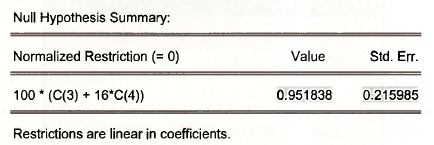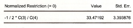 Using the same approach, select View/Coefficient Tests/Wald – Coefficient Restrictions and enter
