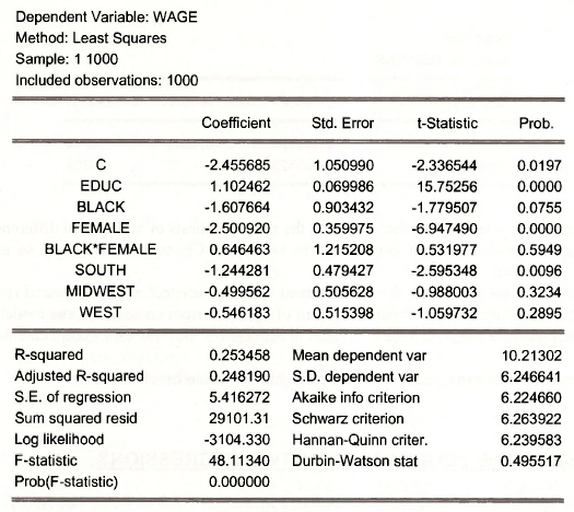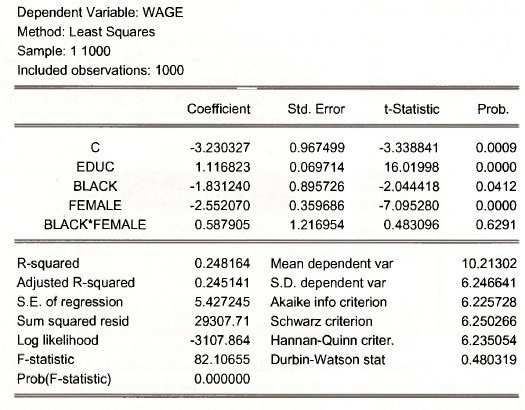 To test the hypothesis that neither race nor gender affects wage we formulate the null hypothesis