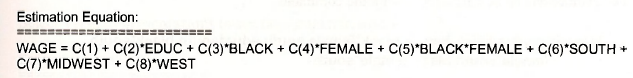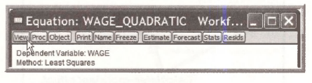 Recall that this notation assigns the name WAGE_R to the regression object. Alternatively use Quick/Estimate Equation and then assign a name. The result is