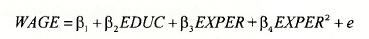 To illustrate we use a wage equation with wages a function of education and the worker’s years of experience. What we expect is that young, inexperienced workers will have relatively low wages; with additional experience their wages will rise, but the wages will begin to decline after middle age, as the worker nears retirement. To capture this life-cycle pattern of wages we introduce experience and experience squared to explain the level of wages