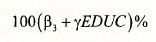 The exact calculation of the effect of gender on wages looks complicated, but it is simple in EViews. Select View/Coefficient Tests/Wald – Coefficient Restrictions. In EViews the exponential function is exp. To make the nonlinear calculation enter it as a hypothesis.