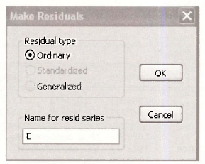 Next, to generate the residuals from the regression equation, click on Proc and select Make Residual Series from the drop-down menu.