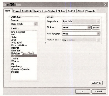 The EViews workfile spurious.wfl contains the 2 random variables (RW1 and RW2) shown in Figure 12.3(a). To plot the scatter graph, select the 2 variables, open Group, View / Graph/ and select Scatter as shown below.