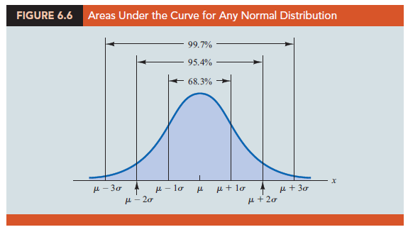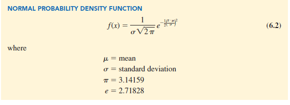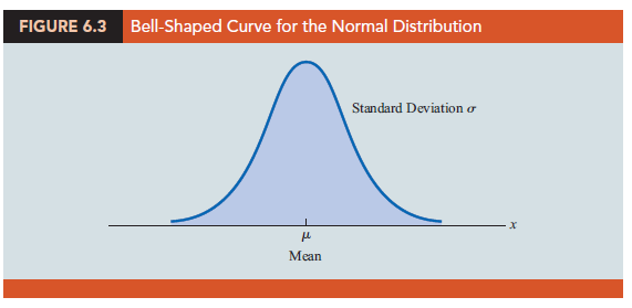 The form, or shape, of the normal distribution is illustrated by the bell-shaped normal curve in Figure 6.3. The probability density function that defines the bell-shaped curve of the normal distribution follows.